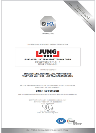 那么,为何众多企业始终信赖德国JUNG品牌? 德国JUNG产品通过多项国际安全认证,首先,它获得了DIN EN ISO 9001质量管理体系认证,从生产流程到成品检验,每一个环节都遵循严格的国际标准,保障产品的一致性和可靠性。同时,JUNG设备符合ANSI/ASME标准,该认证由美国机械工程师学会颁发,专门针对工业搬运设备的安全性、耐用性和功能进行 rigorous 测试。为用户提供了法律和保险层面的保障,尤其在重工业、核电和国防等高风险领域,这种可靠性至关重要。