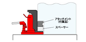◀附件可自由滑动,通过插入垫片(用于填补间隙),即可从任意卡爪位置进行顶升操作